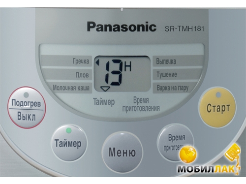 В Panasonic SR-TMH181 HTW предусмотрен таймер отсрочки, который позволяет готовить блюда к определенному времени: мясо к ужину или кашу к завтраку. Вы сможете заранее загрузить ингредиенты, а мультиварка включится сама и приготовит блюдо к желаемому времени. После окончания приготовления автоматически включается режим поддержания блюда теплым, который может работать в течение 12 часов. Данная модель отличается от предыдущих угольным покрытием Bincho, которое улучшает питьевые свойства воды.